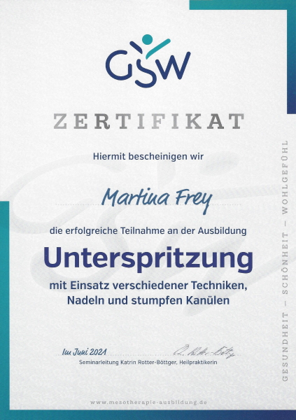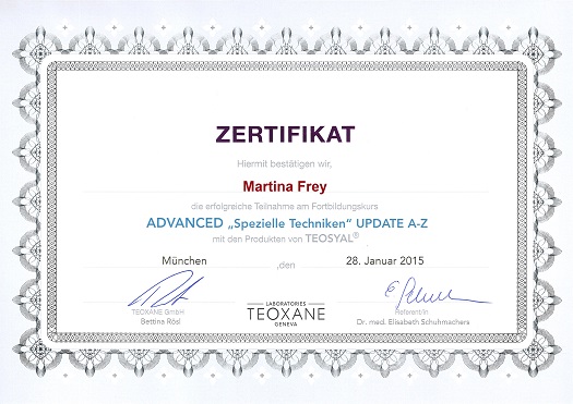 Mit dem regelmäßigen Besuch von Fortbildungen halte ich mich seit 2009 auf dem Laufenden. Dabei lege ich Wert darauf, im Austausch mit erfahrenen Ärzten und Kollegen meine Kenntnisse zu vertiefen.